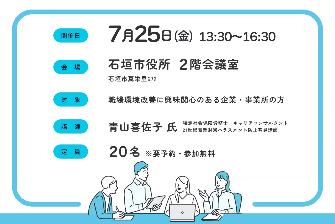 石垣市開催講座!「ハラスメントを防ぐ仕事の進め方」