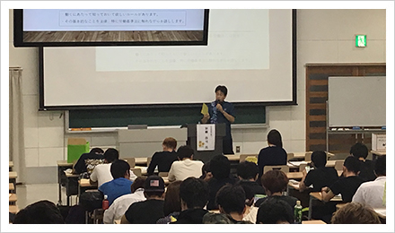 キャリアデザインの授業の一環として、労働者が安心し働くために知っておくべき労働関係法令等に関する基礎知識についてのセミナーを実施しました。実際に相談のあった事例を交えながら、労働条件、賃金未払い、解雇、パワハラ等の労働問題を幅広く紹介し、どのような対応をすべきなのか等について学びました。