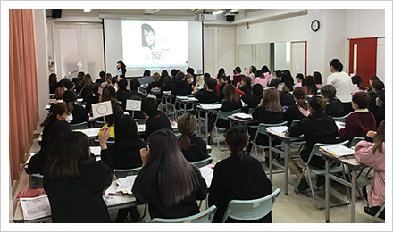 社会に出る前に必要な労働条件などの基本労働法や社会保険制度の説明に加え、 美容業界での社会生活で活かせる内容を社会保険労務士が説明しました。労働条件、賃金未払い、解雇、パワハラ等の労働問題を幅広く紹介し、法令を学びつつ、対応の仕方や、働くこと、働き続けること等について、学びました。