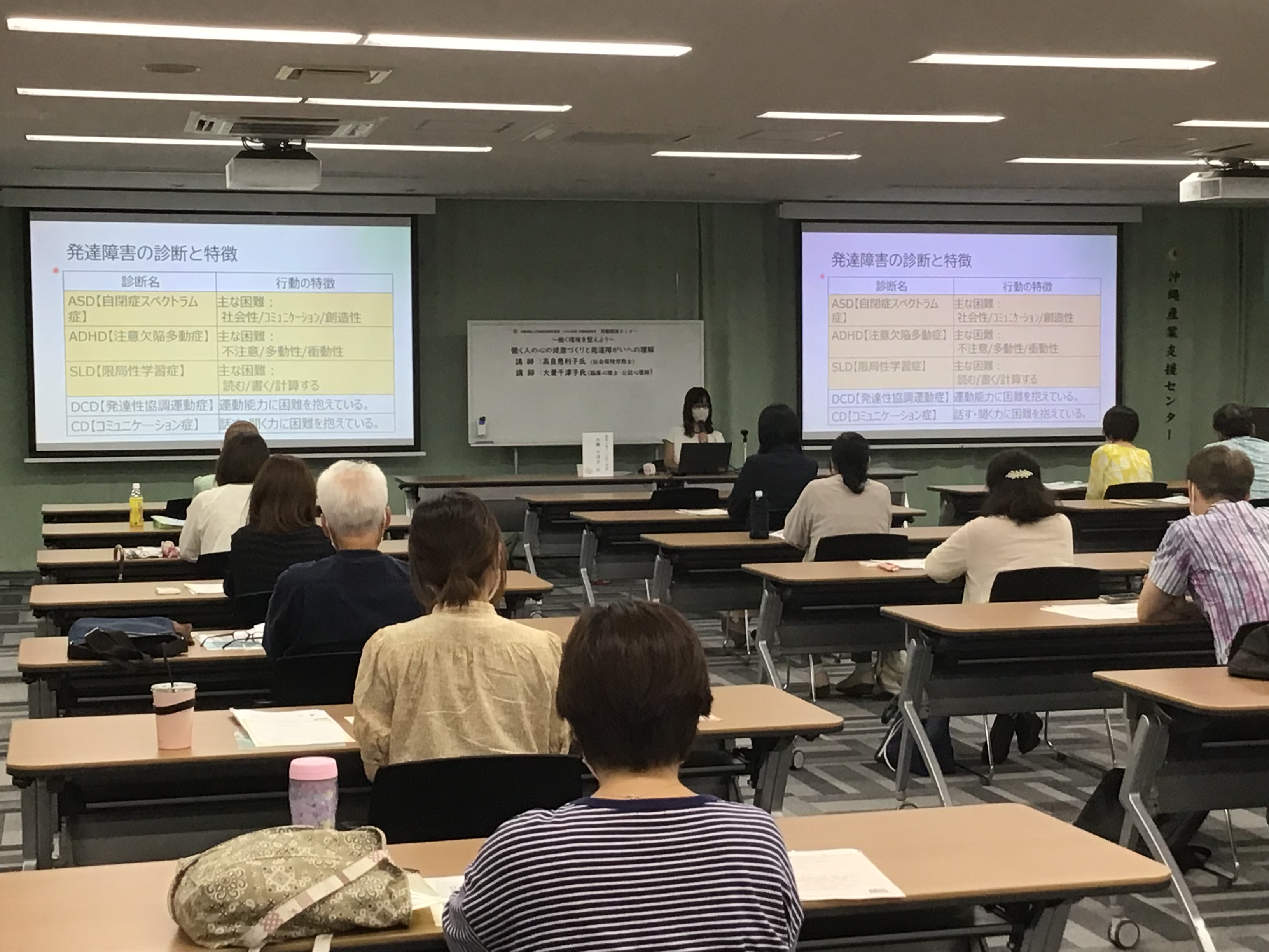 本講座は、社会保険労務士が職場環境でのストレスへの対応やセルフケアについて、また臨床心理士が大人の発達障がいについてわかりやすくご説明しました。労働者が安心して職場で働くために当事者や周囲の人たちへの理解を深めることを目的に開催しました